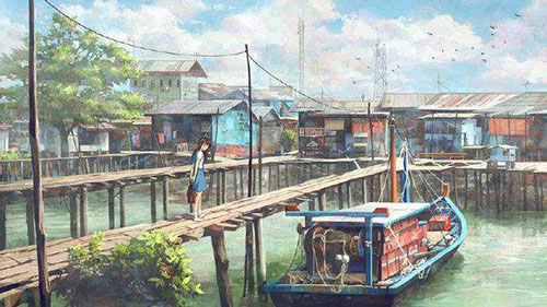 | 遠方的天一絲絲微亮了起來。是魚肚的浮白,一層層淡淡地從啟明星邊的灰藍中褪了出來,淡金色的微光散在云邊。小趙拉開酒紅色的簾子,昂著頭,就那么靜靜地站著。絲簾垂在兩邊,框住了這嶄新的、朦朧的一切。 小趙的舊靴子在接連幾天的暴雨轟擊下終于開了膠。她拖著四下離散的鞋底往教室踱去,凌晨5點半,她熱愛這孤獨的時刻,這讓她覺得自己與別人不一樣。每個人都不甘平凡的吧,她想。雨水混著污水汩汩地在下水道悶聲流著,摻著河里凈化水質用的噴泉傾灑的聲音,竟也顯得不那么陰暗了。只是下水道早已被不知名的塑料袋或是一些其他異物堵住了,豁口不夠呼吸,于是那些污水和其余發(fā)臭的垃圾一起,回旋上升,然后匯成一團黃白色的液體緩緩浮上來。像是免疫時傾瀉出的膿液,昭示著克服感染的成果,或是被同化的結果。汩汩地流著,一層一層慢慢涌上來,似乎要把小趙吞沒。那些異物,不斷的,發(fā)黃的,淌著血液的,骯臟的,又是誰的?